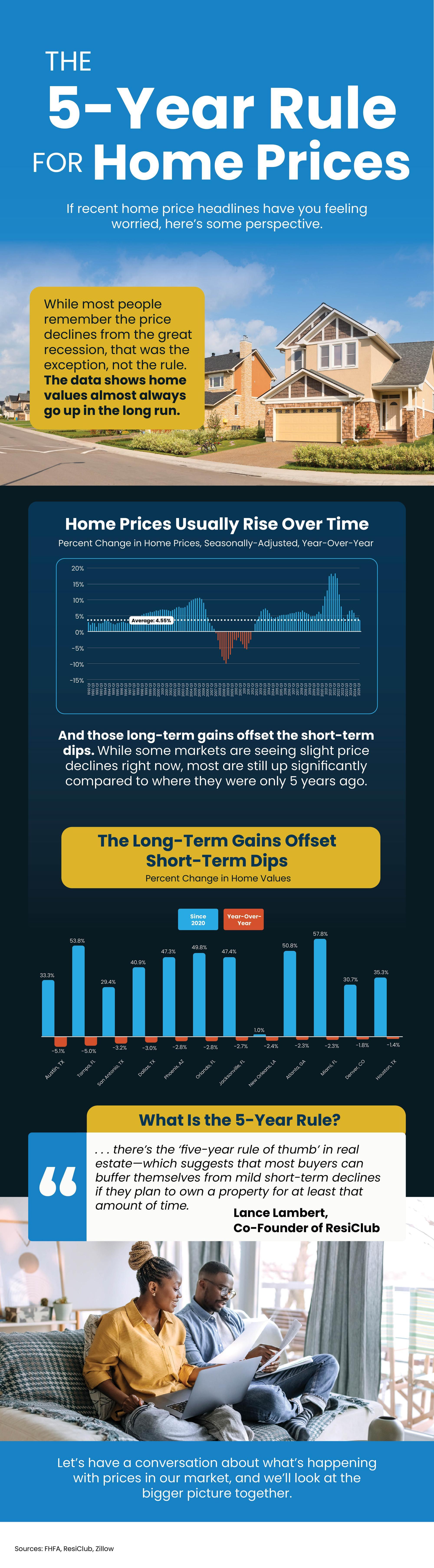 The key is to focus on your time horizon. If you’re planning to stay in your home for five years or more, these short-term changes are less likely to impact you negatively. Over the long run, property values generally recover and continue to rise, helping you build equity and financial stability.